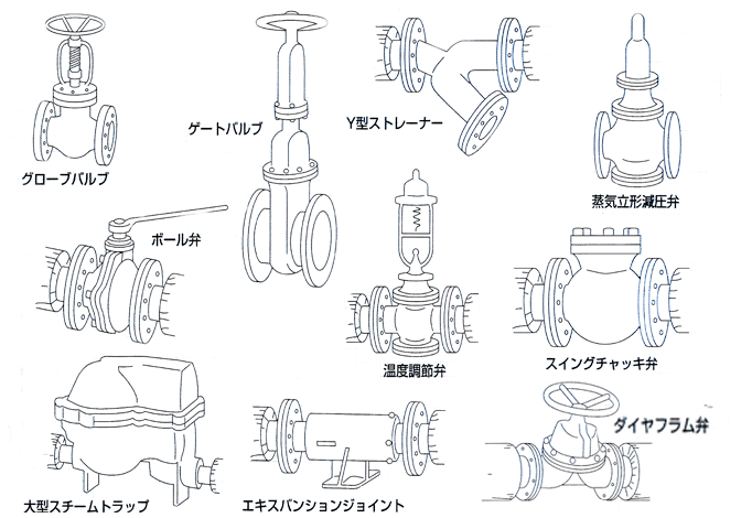 規格品については、ほとんどのブル部には各種規格品を取り揃えております。バルブの種類、圧力と口径、使用温度、屋内・屋外の別によって規格されます。