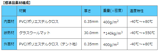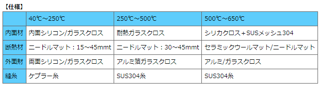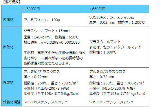 当社のカバーは従来のものとは違い、耐久性、断熱性、耐熱性、耐マシーン油に優れた高強度の外装材と高密度断熱を一体化した特許商品(特許番号2816826にて、特許取得)です。